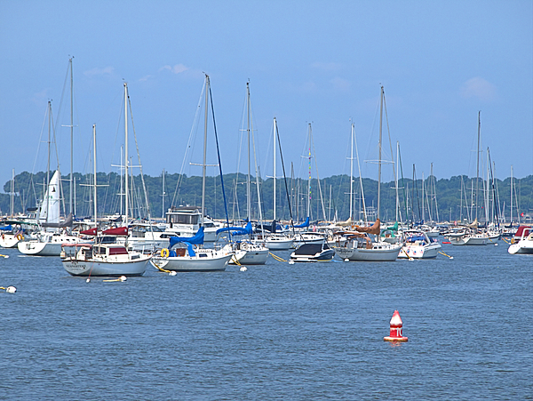 Northport Harbor, Long Island, New York, packed with sailboats moored but ready for a day of sailing.